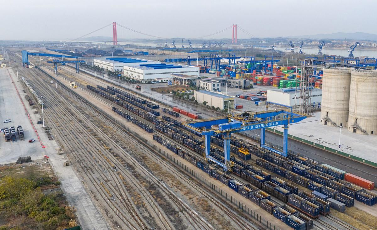 16日,黃石新港進(jìn)出口貨物集裝箱有序裝車。今年以來,黃石新港多式聯(lián)運(yùn)推進(jìn)“一單制、一票制”,提升港口智能轉(zhuǎn)運(yùn)水平和聯(lián)運(yùn)服務(wù)質(zhì)效。截至11月底,多式聯(lián)運(yùn)總運(yùn)量首次突破200萬噸,同比增長(zhǎng)95.8%。