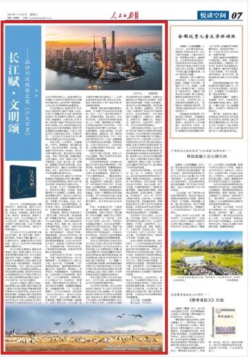 在生態(tài)文明的層面,作品的啟示尤為切近。作者以飽含憂思與希望的筆調(diào),系統(tǒng)呈現(xiàn)了長江的生態(tài)變遷與保護(hù)實踐。從三江源牧民放下牧鞭,成為生態(tài)管護(hù)員,用傳統(tǒng)智慧參與現(xiàn)代監(jiān)測;到洞庭湖、鄱陽湖濕地修復(fù),候鳥種群恢復(fù);再到沿江城市推動產(chǎn)業(yè)轉(zhuǎn)型,減少污染排放……這一幅幅“人與自然和解”的圖景,被作者敏銳捕捉并提升至文明存續(xù)的高度。長江的生態(tài)治理,責(zé)無旁貸地成為解讀“綠水青山就是金山銀山”理念,探索人與自然和諧共生現(xiàn)代化道路的生動樣本。