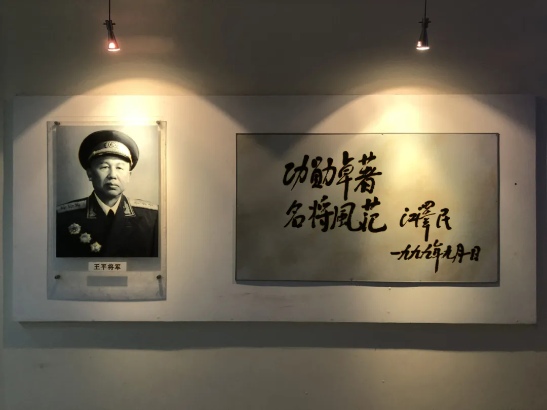 正面有原中共中央總書記、國家主席、中央軍委主席江澤民題寫的“功勛卓著,名將風(fēng)范”8個金色大字;背面是原國防部長遲浩田上將的題詞:“深切緬懷老首長王平同志,王平上將永遠(yuǎn)活中我們心中”。