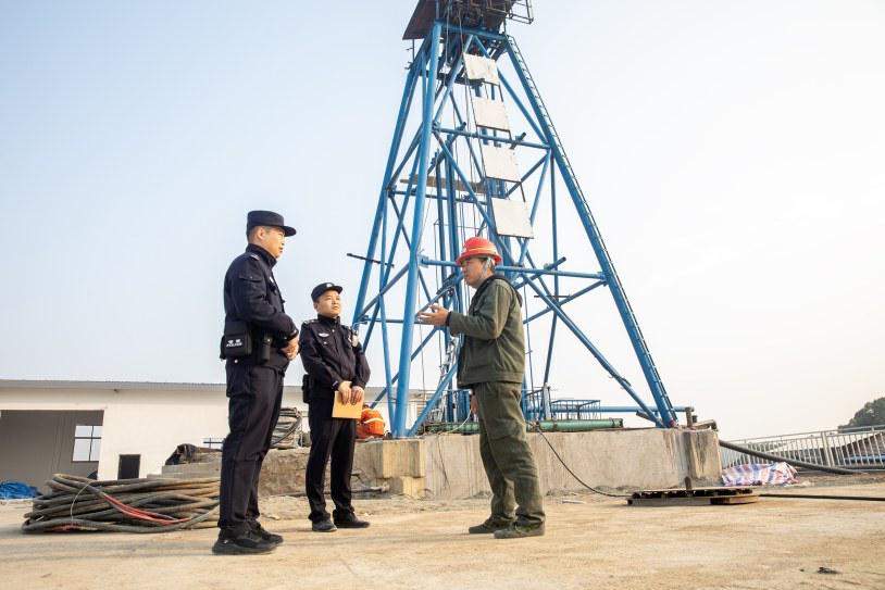 民警與企業(yè)相關(guān)負(fù)責(zé)人了解安保情況